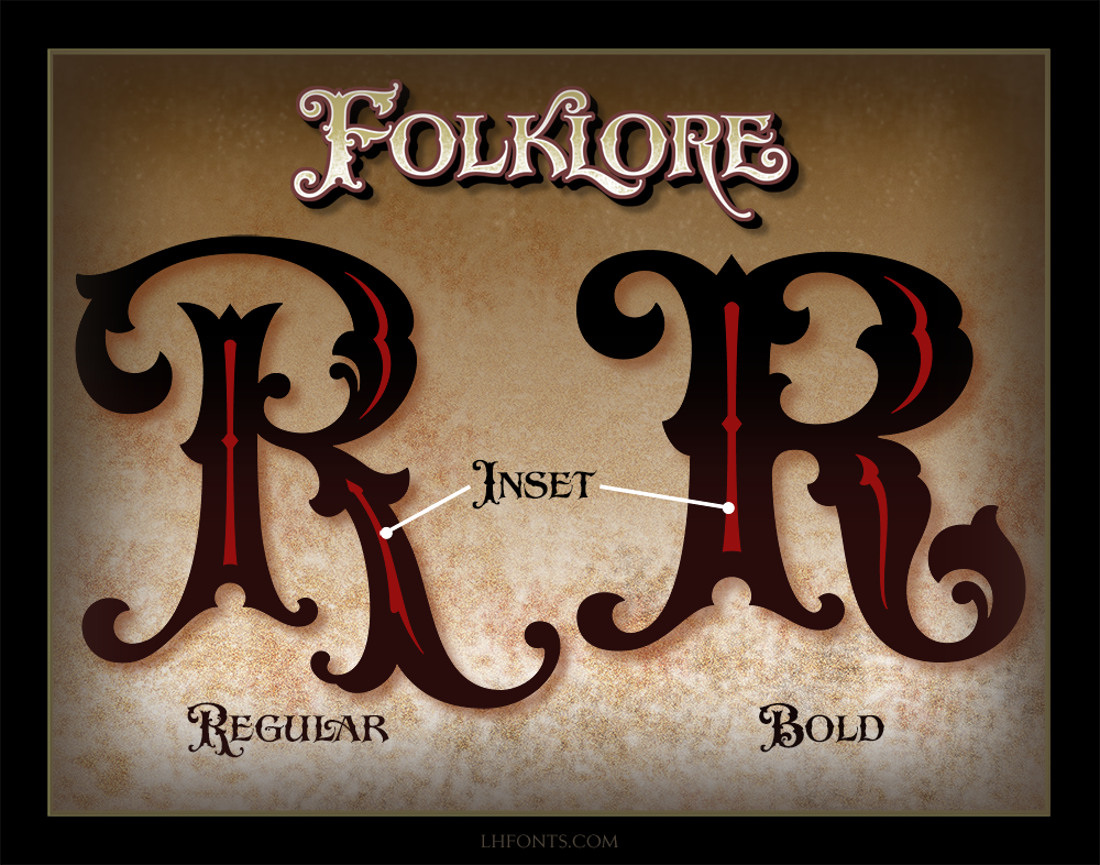 When we were using LHF Folklore in our own designs, we were blown away at how well the letters work with each other. That's not an easy task with a decorative font like this, but veteran sign artist Steve Contreras has pulled it off beautifully. This unique set includes Regular and Bold weights with separate Inset fonts to make it easy to change colors quickly.