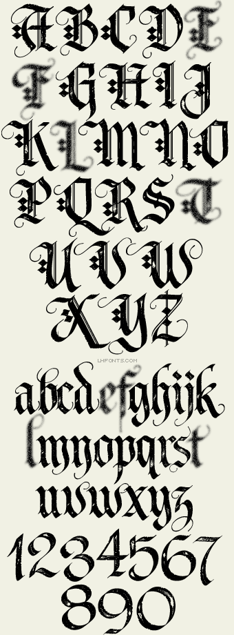 This set was updated in 2021 to include two new versions without the diamonds on the uppercase: LHF Tributary 2 Regular & LHF Tributary 2 Distressed. These new versions are a good choice where the diamond caps would prove be too decorative. Beautiful fluid flourishes contrast with bold strokes to create an extremely well-balanced typeface & a fine example of expertly executed calligraphy. Distressed letters have been carefully designed to give it a freshly-inked appearance.